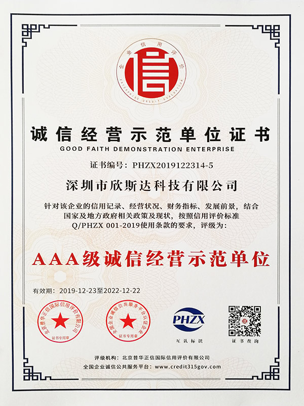 AAA級(jí)誠(chéng)信供應(yīng)商證書